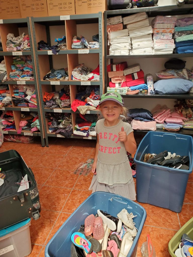 Mabel and I got to spend a little time helping sort and organize donations at Porch de Salomon.